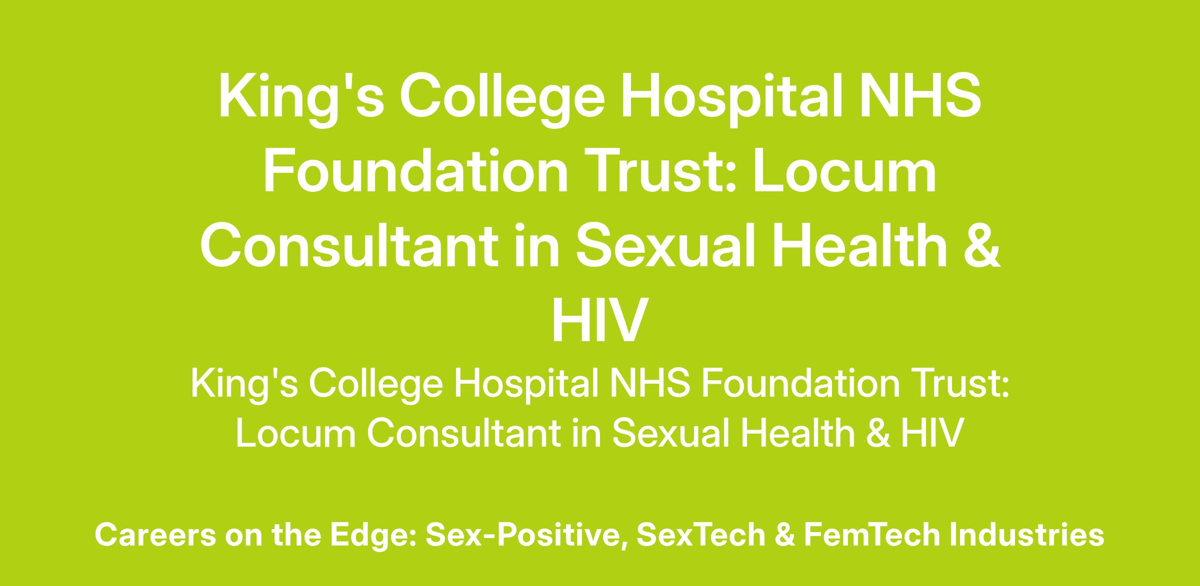 King's College Hospital NHS Foundation Trust: Locum Consultant in Sexual Health & HIV