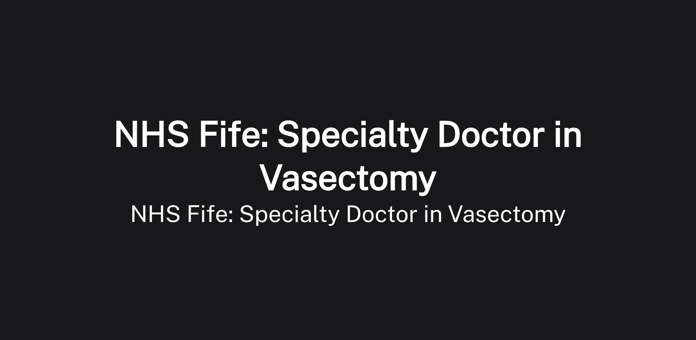 NHS Fife: Specialty Doctor in Vasectomy