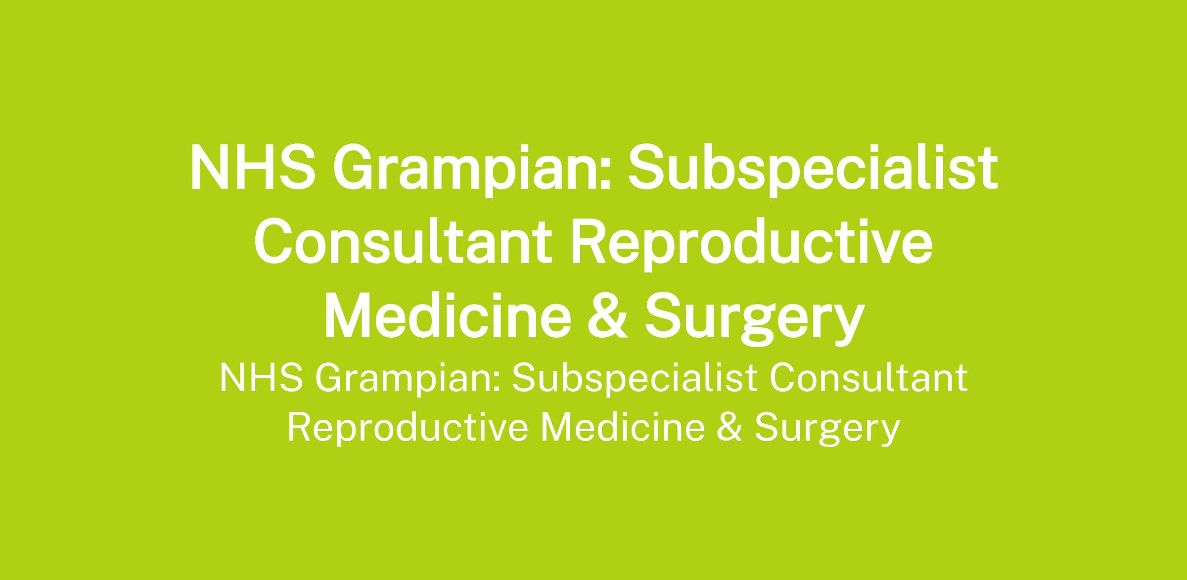 NHS Grampian: Subspecialist Consultant Reproductive Medicine & Surgery