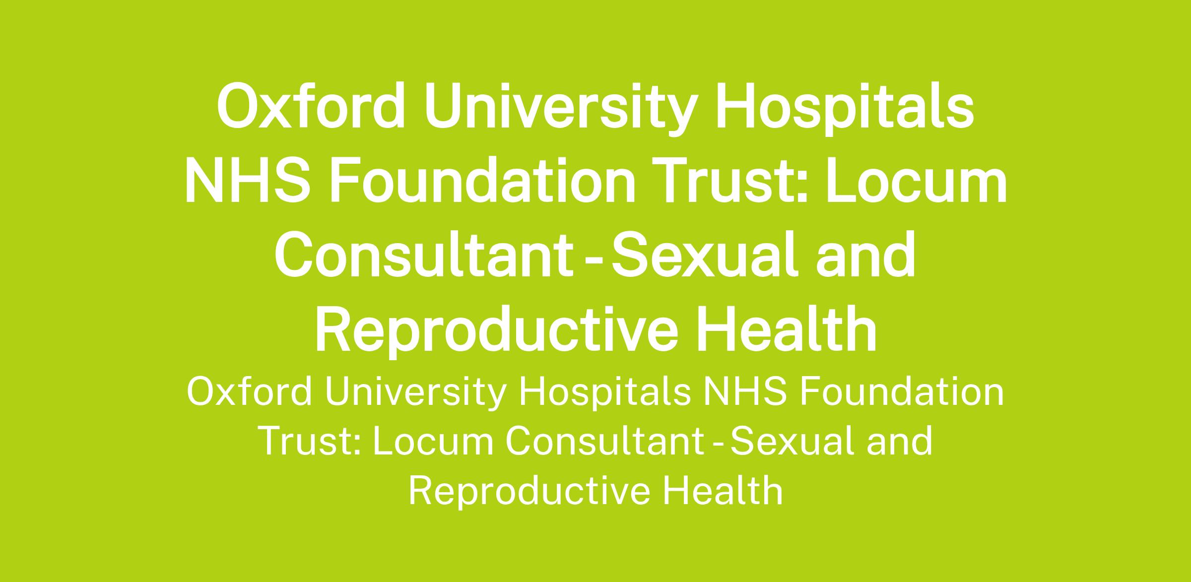 Oxford University Hospitals NHS Foundation Trust: Locum Consultant - Sexual and Reproductive Health